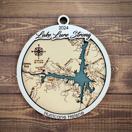 "Lake Lure Strong" a 3-Layer Wooden Map Ornament (5")