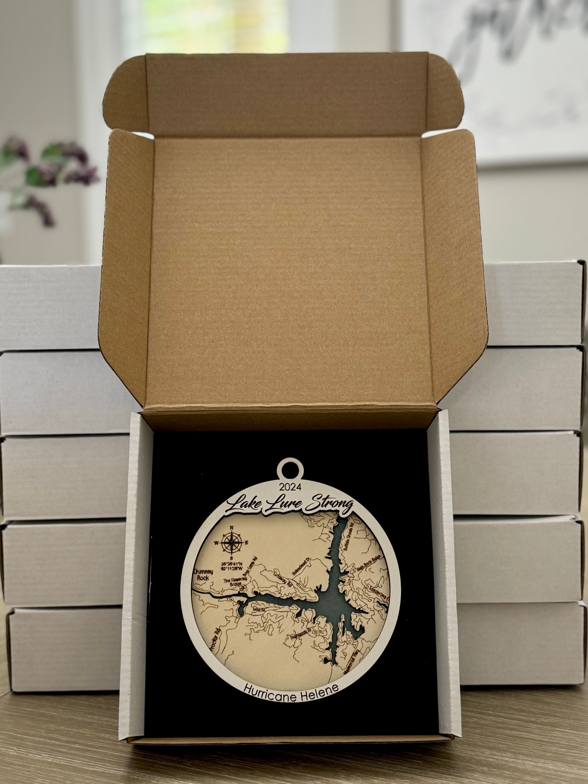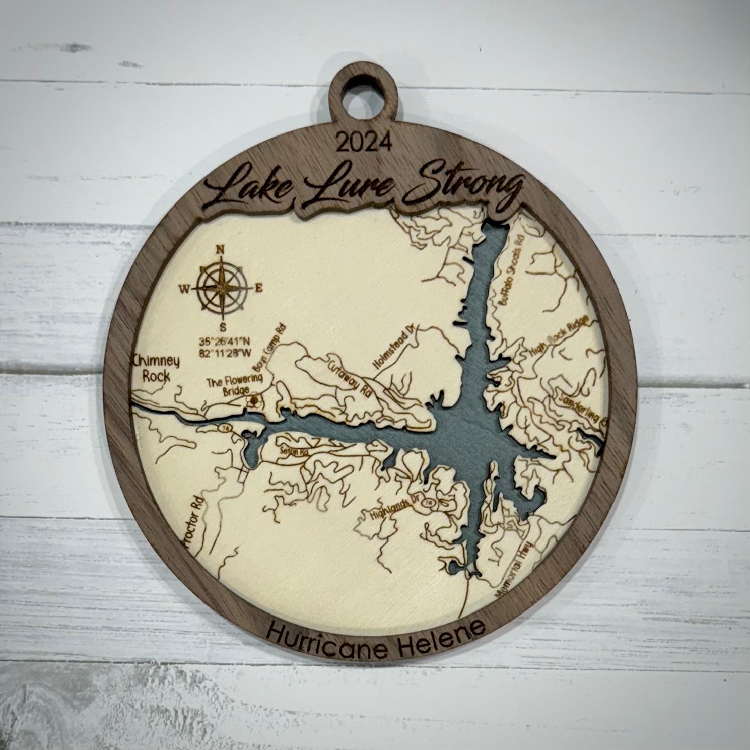 "Lake Lure Strong" a 3-Layer Wooden Map Ornament (5")